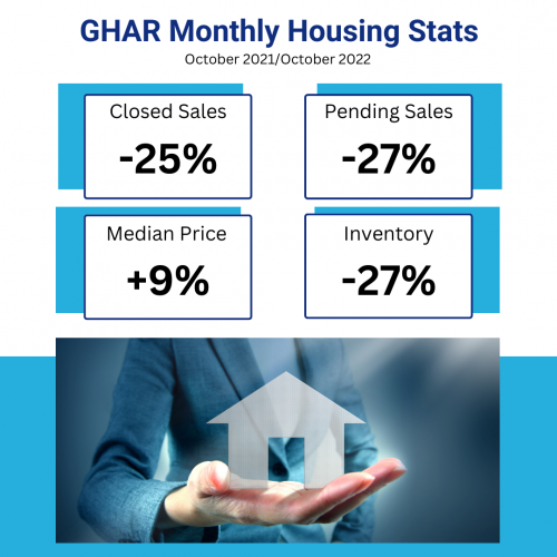 According to the Greater Hartford Association of REALTORS® (GHAR), housing inventory dropped 27.3 percent (from 1284 to 933) over October of last year. Closed sales decreased 25.0 percent (from 631 to 473) and pending sales decreased 27.2 percent (from 646 to 470). The median sales price of single-family homes in Greater Hartford increased 8.7 percent (from $300,000 to $326,000). New listings fell 20.1 percent (from 668 to 534) and the average days on market until sale remained unchanged at 28 days, during this same year over year timeframe.